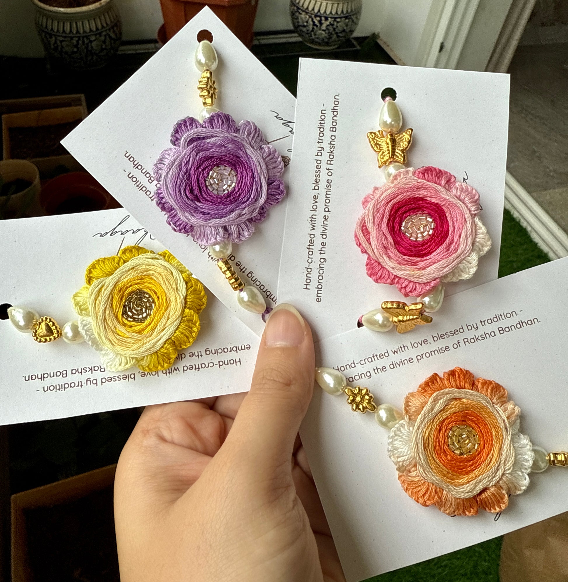 Mark this Raksha Bandhan with the elegance of our Ombre Bloom Rakhis, designed to honor the special bond with style and grace.